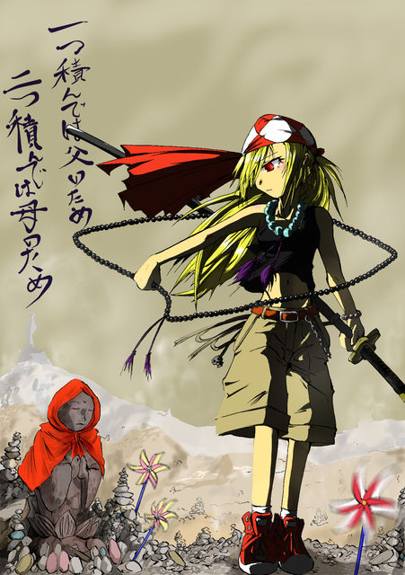 いたるところに刺さった風車がカラカラと乾いた音をだしながら廻り、大小様々な地蔵様が各所に点在している。