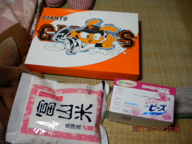 上の写真が謎の支援物資。