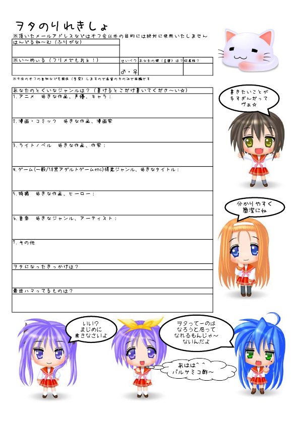 オフ会では自己紹介カード(ヲタりれきしょ)を配布します。